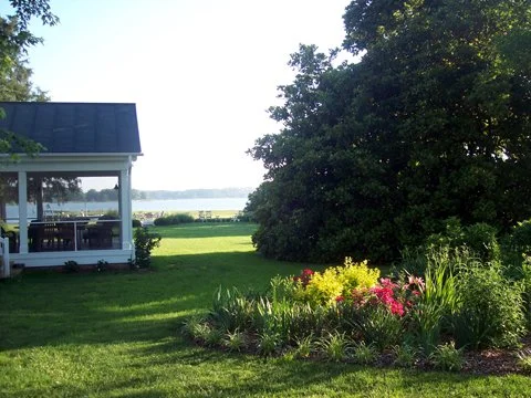 The front yard with pool and point/pier to the right - 2009