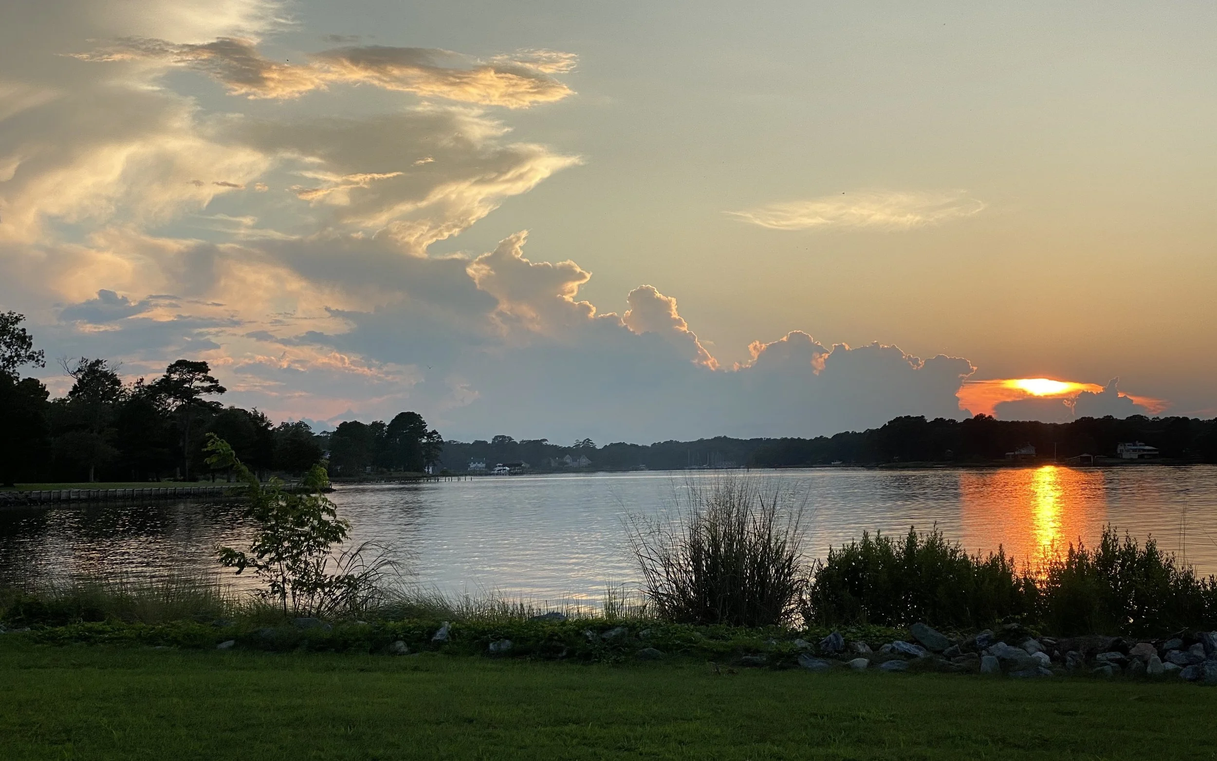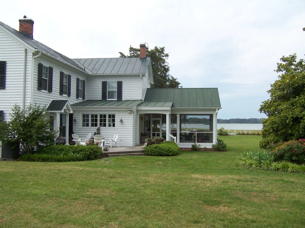 The “river house’ was built in the 1840’s and is located on waterfront property near where Stutt’s Creek opens into the Chesapeake Bay. It’s official name is Fitchett’s Wharf. It is in Moon, VA on the site of an old wharf and shipbuilding yard. The steamboats and ferries that went up and down the bay, stopped here in the 1800’s and early 1900’s. Our house was the shipbuilder’s house. The next door neighbor’s house was the wharf store.